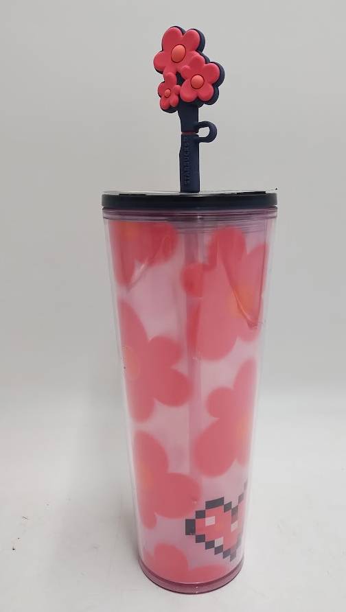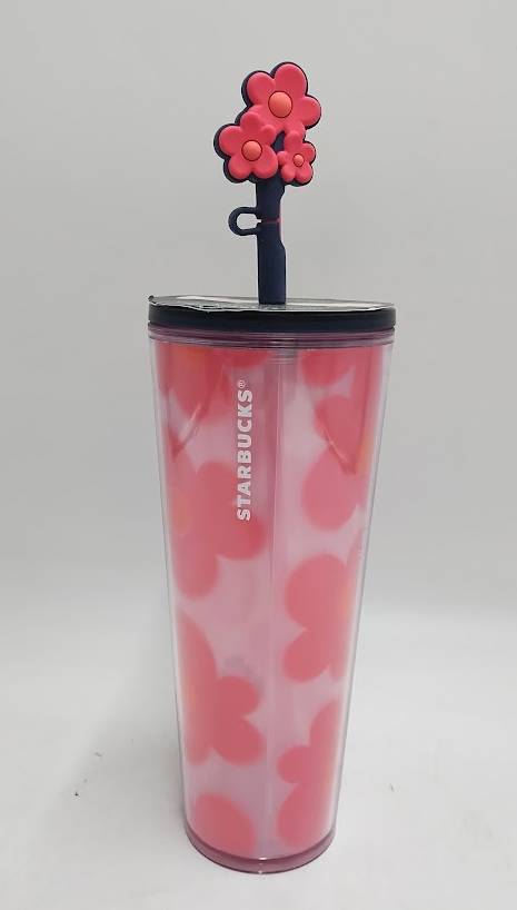 StarbucksNO Silicone flower straw topper Valentine’s Day Plastic Cold Cup with Straw Topper – 24 fl oz Double-wall Plastic, Silicone flower straw topper ...