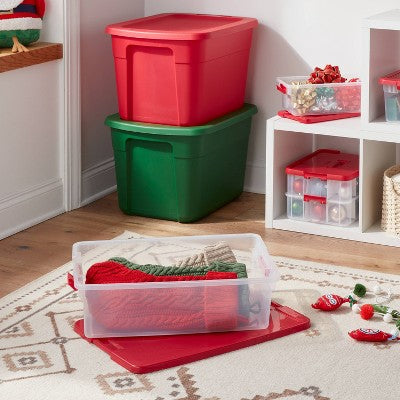 View full details32qt Latching Clear Storage Box - Rocket Red Lid and Latch - Brightroom: Stackable Plastic Utility Tubs, 32 Volume Capacity