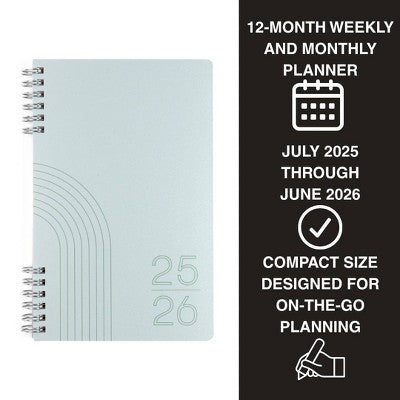 View full detailsAltitude Supplies 5"x8" Weekly and Monthly Planner, July 2025 to June 2026, Seafoam Blue Arch