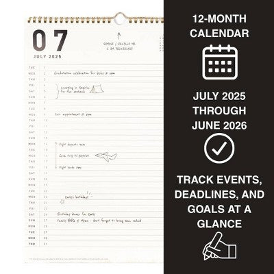 View full detailsAltitude 12"x15" Monthly Wall Calendar, July 2025 to June 2026, Black and White