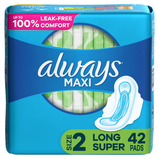 View full detailsAlways Maxi Pads Long Super Absorbency Unscented with Wings - Size 2 - 42ct