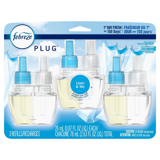 View full detailsFebreze Odor-Eliminating Fade Defy Plug Air Freshener Refill, Linen & Sky, (3) .87 Fl. Oz. Oil Refills