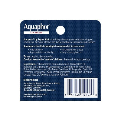 AquaphorAquaphor Lip Repair Stick, the ointment you love now in a Stick! From the # 1 Dermatologist recommended lip care brand. Aquaphor Lip Repair Stick i...