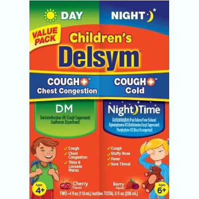 Delsym Children's Cough + Chest Congestion Liquid provides 24-hour relief with specially formulated Day & Night liquids to treat your child's c...