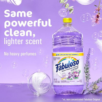 FabulosoFabuloso Multi-Purpose Cleaner is powerful and safe for multi-surfaces and cleans with a fresh scent. Fabuloso 2X Light Lavender delivers the same ...