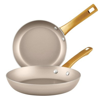 FarberwareThese statement-making frying pans radiate style, with contemporary champagne-colored surfaces inside and out and sleek gold-colored stainless stee...