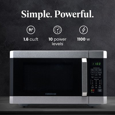 View full detailsFarberware Professional 1.6 Cu. Ft. 1100-Watt Microwave Oven with Smart Sensor, Stainless Steel with Platinum (LOCAL PICKUP ONLY)