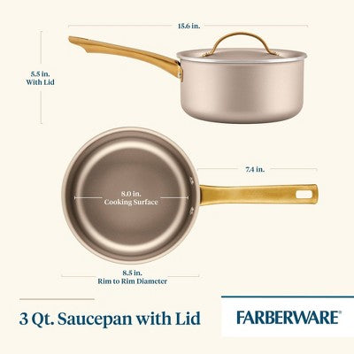 FarberwareThis statement-making saucepan radiates style, with a contemporary champagne-colored surface inside and out, color-matched lid, and sleek gold-colo...