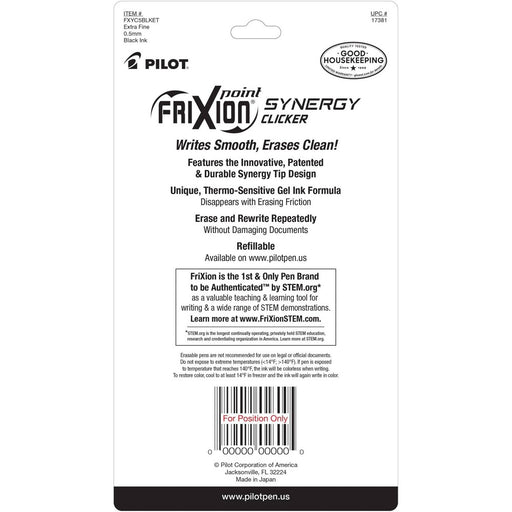 View full detailsPilot 5pk FriXion Synergy Clicker Erasable Gel Pens Extra Fine Point 0.5mm Black Ink