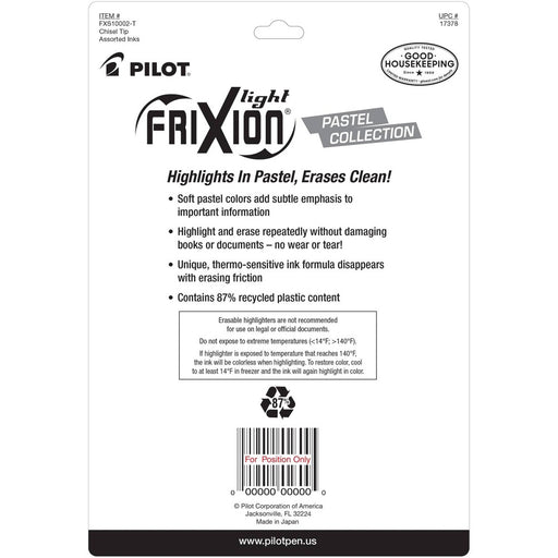 FriXionPilot FriXion Light Pastel Erasable Highlighters feature soft, soothing shades designed to emphasize without fluorescent colors. FriXion’s unique, ...
