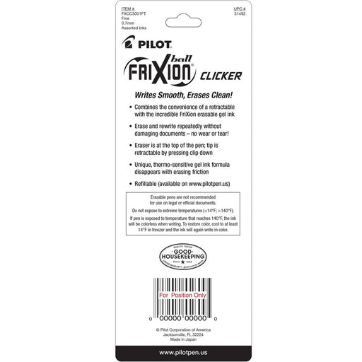 FriXionNever write a mistake again – guaranteed! Pilot FriXion Clicker is America’s first retractable, Erasable Gel Ink pen that allows you to write, eras...