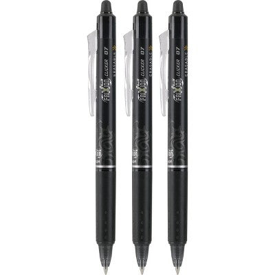 View full detailsPilot 3ct FriXion Clicker Erasable Gel Pens Fine Point 0.7mm Black Ink: Retractable, Stationery, Office, Eraser Included