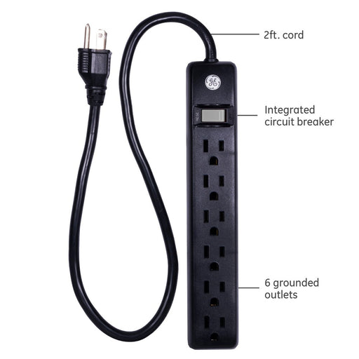 GEPower Strip, 6 Outlet/2' Cord, Black Dimensions (Overall): 9.39 Inches (L), 1.28 Inches (H) x 1.65 Inches (W)Weight: .51 PoundsCable/Cord Length: 2...