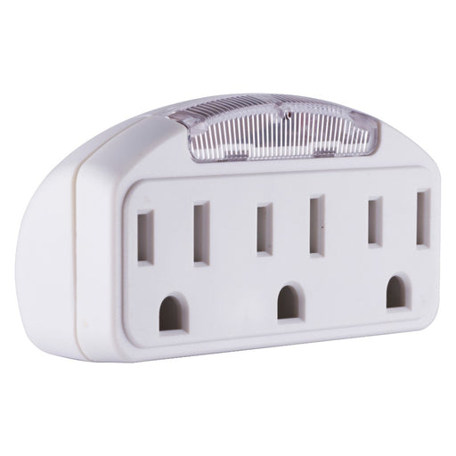 GEIncrease your outlet's potential with the GE 3-Outlet Grounded Tap with Guide Light. This outlet extender safely turns one outlet into three in jus...