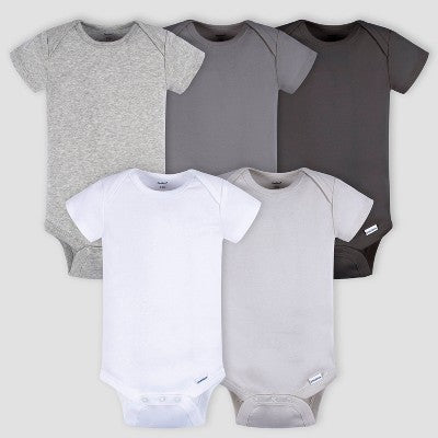 View full detailsGerber Baby 5pk Short Sleeve Onesies - White/Gray/Black Newborn
