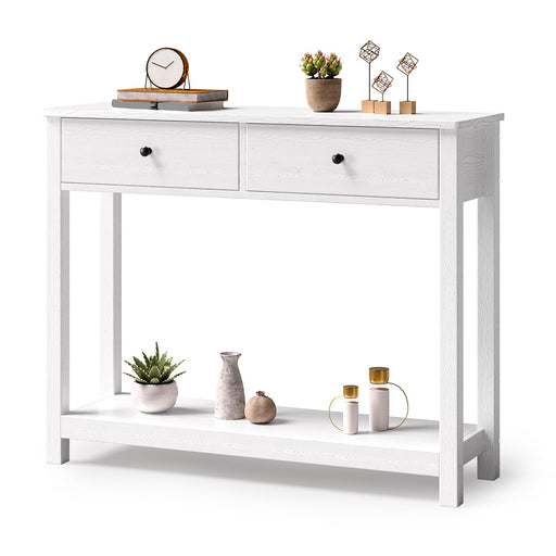 Gizoon Console Table With Drawers, Sofa Table With Storage Shelves, 2-Tier Wooden Entryway Table For Living Room, Kitchen, Hallway, Foyer, White (LOCAL PICKUP ONLY)