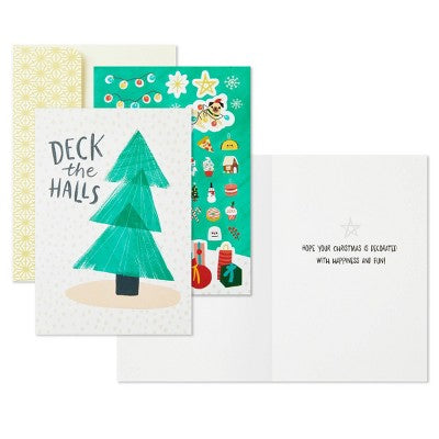 Hallmark 12ct 'Deck the Halls' Christmas Tree Boxed Holiday Greeting Card with Stickers