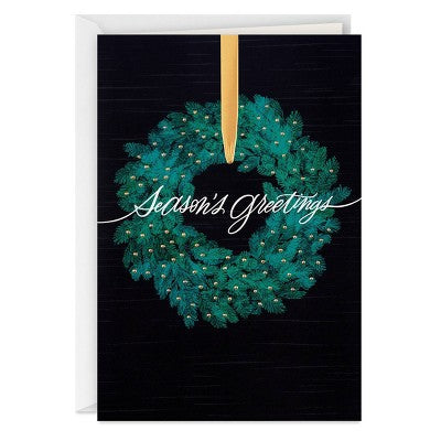 Hallmark 10ct 'Season's Greetings' Wreath Single Design Boxed Card Pack Black