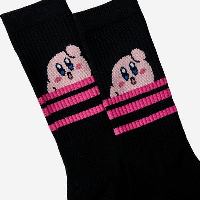 Enjoy a day of gaming, relaxing or running errands while wearing these Kirby Athletic Crew Socks. This pair of black crew socks showcases a Kirby g...
