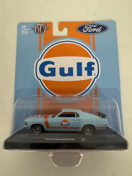 View full details1/64th M2 Machines Auto Drivers R131 Gulf 1970 Ford Mustang BOSS 302