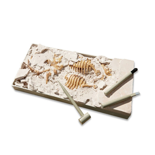 Budding paleontologists excavate a dinosaur skeleton that's buried in plaster using heavy-duty tools. Then, it is time to snap the hard, plastic b...