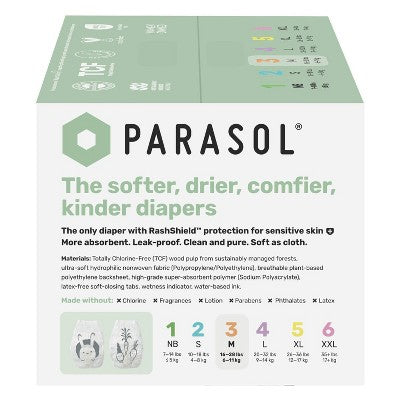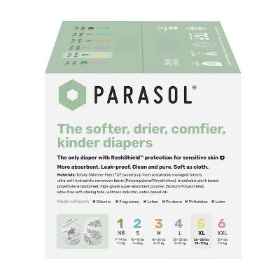 Bye Bye Rash! By ParasolThe only diaper with RashShield™ protection for sensitive skin.Crafted by a mother to bring you peace of mind.Totally chlor...