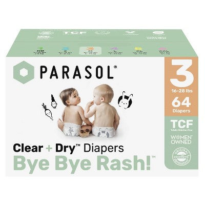 Parasol Clear+Dry Natural Disposable Diapers - Size 3 - 64ct