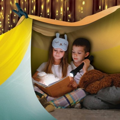 Playtopia Fort Building Kit Includes 8 heavy duty clips, storage bag and large tent fort! Great for sleepovers! Kids love having a hideaway play ...
