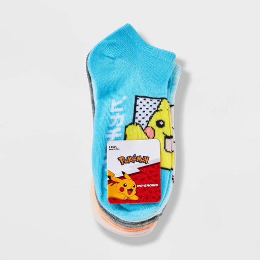 Boys' Pokemon Pikachu 6pk No Show Socks - Gray/Yellow S/M