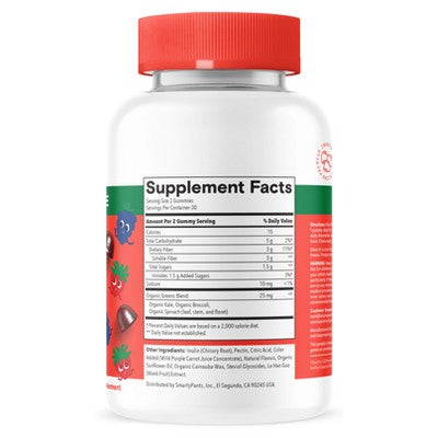 SmartyPantsSmartyPants Kids Fiber & Veggies contain 3 g of prebiotic fiber, the same amount of fiber as 3 cups of kale‡, to support kids’ digestive health...