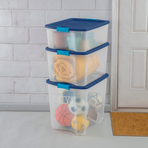View full detailsSterilite 12 Gal Latch & Carry Clear with Blue Lid and Blue Latches