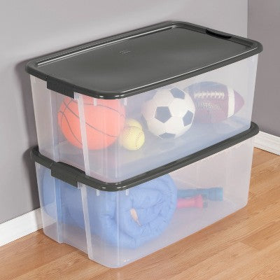 View full detailsSterilite 116 Qt Ultra Clear Latch Box Clear Base Flat Gray Lid and Latches: Stackable Storage Tote with Handles (LOCAL PICKUP ONLY)