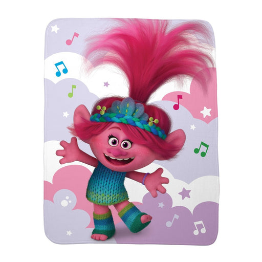 Queen Poppy is looking adorable as ever in her knit jumper on this music-themed throw. With music note accents amongst the colorful clouds, Poppy s...