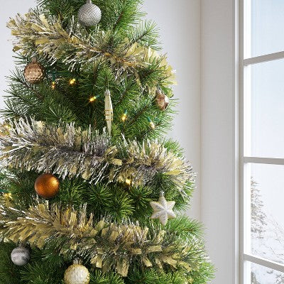 WondershopAdd a touch of shine and sparkle to your holiday decor with this 10-Foot Mega Wide-Cut Gold and Narrow-Cut Silver Christmas Tinsel Garland from Won...