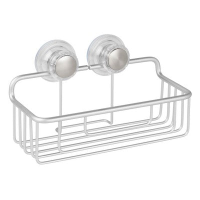 iDESIGN Metro Rustproof Aluminum Turn and Lock Suction Bathroom Shower Caddy Basket Silver: Steel Organizer Rack