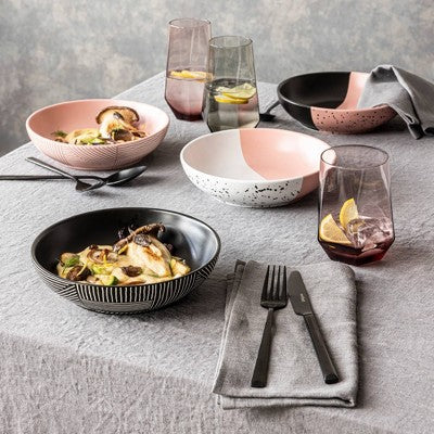 View full detailsover&back 30 fl oz Stoneware Dinner Bowl Pink/White with Black Splatter