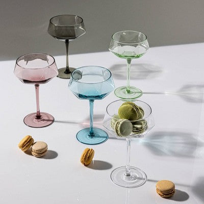 over&back 11 fl oz Facet Coupe Glass Bright Green Aqua