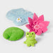 Style their nursery with cute characters from the aquatic world with this Stackable Lily Stuffed Animal from Gigglescape™. This set features a plush blue pillow, a green leaf, a pink blooming lily flower and a cute green frog. Made of polyester, these characters can be stacked to create eye-catching decor or used individually for play. This plush toy is great for playtime and is suitable for ages one and above.