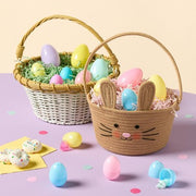 Brighten up your Easter celebrations with the Spritz 12" Plastic Willow Basket. Crafted from durable polyethylene, this round basket features a charming white and color scheme. Its 5.5-inch height and 12-inch width make it perfect for holding treats or decorative items. The basket's handle and nesting design offer convenient storage and organization, making it a practical addition to your spring festivities.