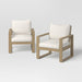 Enjoy the outdoors with the 2-Pack Esker Recycled Resin Wood Outdoor Patio Chairs from Threshold™. This pack of two patio chairs includes a brown wooden frame in a square shape for an appealing look. Upholstered in cream, the recycled resin patio chairs pack comes complete with loose seat and back cushions to help you sit in comfort whether you're alone or with a loved one.