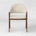 Elevate the ambiance of your dining area with the Ingleside Open-Back Upholstered Wood-Frame Dining Chair from Threshold™. This upholstered armchair is constructed from a dark-brown hardwood with a padded seat and backrest finished with rounded corners, along with a cut-out design at the back to create a clean, airy silhouette. Perfect for adding a touch of modern style and luxury to your dining room, this dining chair is wrapped in a textured gray upholstery, which contrasts beautifully with the dark-brown frame for an eye-catching look — it can also be used for additional impromptu seating anywhere in your home.