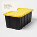 Keep your garage or gardening tools organized in one spot with the Heavy Duty Storage Tote from Brightroom™. This black storage tote is designed in a rectangular shape with a yellow lid for a contrasting look you'll love, and the snap closure helps keep the contents nicely covered. Made of plastic, this portable storage tote makes a functional addition to your home.