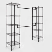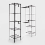 Create a statement while organizing your home with this Wire Closet System from Brightroom™. This metal-frame closet system features two towers linked to each other with rods for a sleek look you'll love accenting your space with. The shelves provide ample storage space for your bags, shoes, storage bins and more, while the rods offer enough hanging space for your clothes to keep them organized in one spot. The versatile, customizable design features adjustable rods and shelves — makes it suitable for your entryway, bedroom closet or any other area. Easy to integrate into a range of decor styles, this metal closet organizer provides easy access to your clothes and other items.