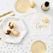 Serve your delicious snacks, treats and desserts using the 50ct Gold/White Snack Plates - Spritz™. These hexagon-shaped plates are not only visually appealing but also practical for easy clean-up. Whether you're hosting a themed celebration or simply enjoying a casual get-together, with this pack of 50 plates, you'll have plenty to go around for all your guests.
