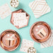 Serve your delicious snacks, treats and desserts using the 50ct Rose Gold Dinner Plates - Spritz™. These hexagon-shaped plates are not only visually appealing but also practical for easy clean-up. Whether you're hosting a themed celebration or simply enjoying a casual get-together, with this pack of 50 plates, you'll have plenty to go around for all your guests.