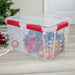 Safeguard your holiday treasures with the Brightroom™ 54 Quart Gasket Box! This waterproof and airtight storage solution will protect your cherished holiday ornaments, keepsakes, and linens so they stay merry and bright year after year. The gasket seal and tight-fitting latches keep the lid secured to the base, while keeping moisture, air, dust, and pests out. Festive red accents make it easy to locate and retrieve decorations, while the clear bin and lid let you see contents at a glance. Recessed lids allow same-size boxes to stack securely, maximizing vertical storage space.