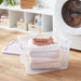 Organize your home essentials with ease using this Clear Latching Storage Box from Brightroom™. Featuring a stackable design for compact spaces, this transparent storage box allows you to easily see what you've stored inside. Designed in a rectangular shape, this storage box comes with a lid in a lavender splash hue to keep the items neatly contained, and it has a capacity of 66 quarts for ample storage.