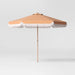 Complete your patio setting with the Outdoor Round Patio Market Umbrella from Threshold™. This round umbrella features decorative accents for a beautiful look. Fade- and rust-resistant, this patio umbrella has a push-button tilt for quick adjustments. This metal-frame umbrella includes a carrying bag for easy portability.