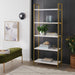 This 72-Inch 5-Shelf Loring Ladder Bookshelf from Threshold™ makes a stylish and functional addition to your home. The decorative bookcase is designed with a black metal frame, contrasted with brown wood-finish open shelves for a mixed-material look. Featuring five open shelves, it offers ample storage and display space to meet your different placement requirements, from the living room to your home office.