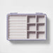 Keep your accessories organized in one spot with the Acrylic Accessory Organizer with Lid from Brightroom™. This accessory organizer features multiple divided compartments to store and display your rings, earrings, bracelets and more. Made with plastic and a fabric interior, this clear accessory organizer looks great on a dresser or shelf.